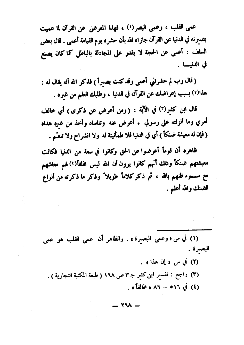 {قَالَ رَبِّ لِمَ حَشَرْتَنِي أَعْمَى وَقَدْ كُنْتُ بَصِيراً} 2 فذكر الله أنه يقال له: هذا 3 بسبب إعراضك عن القرآن في الدنيا، وطلبك العلم من غيره.