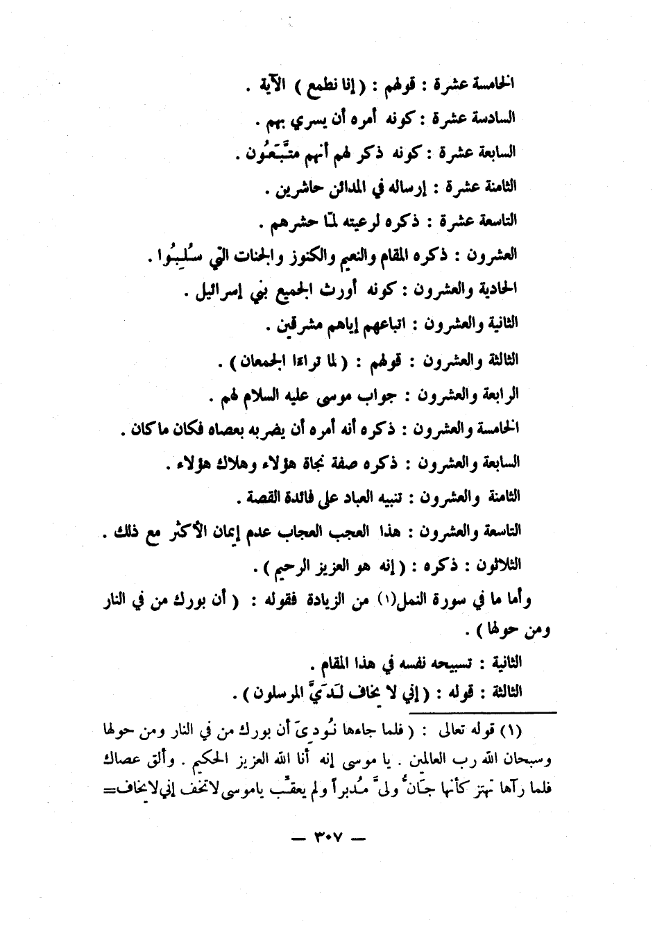 الأولى: فقوله: {أَنْ بُورِكَ مَنْ فِي النَّارِ وَمَنْ حَوْلَهَا} 4.