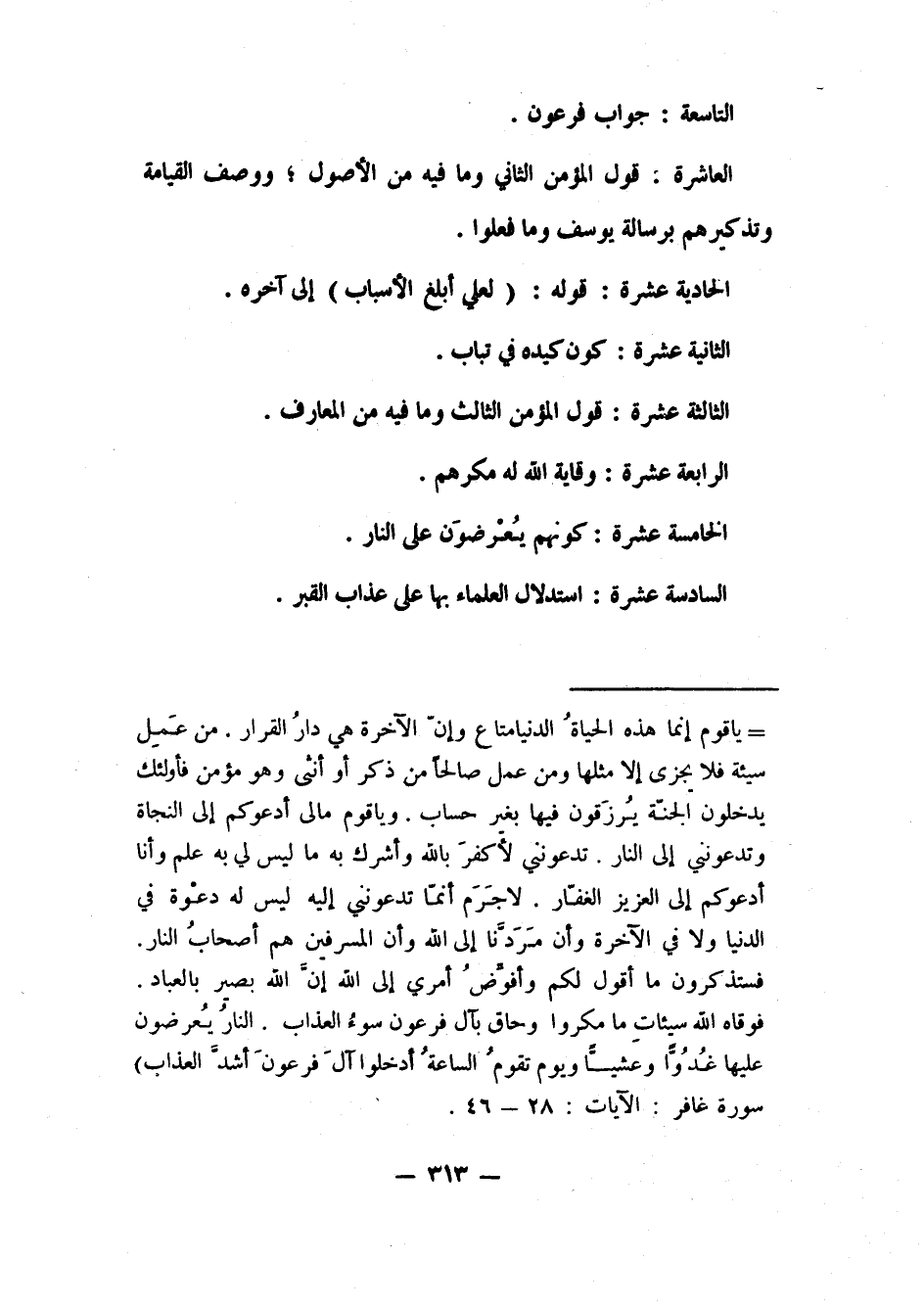 الثالثة عشرة: قول المؤمن الثالث، وما فيه من المعارف.