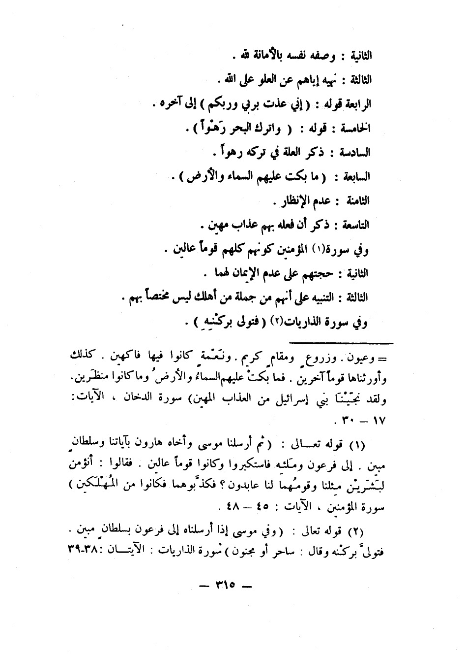 5 قوله تعالى: (وفي موسى إذ أرسلناه إلى فرعون بسلطان مبين فتولى بركنه وقال ساحر أو مجنون. سورة الذاريات) الآيتان: 38-39.