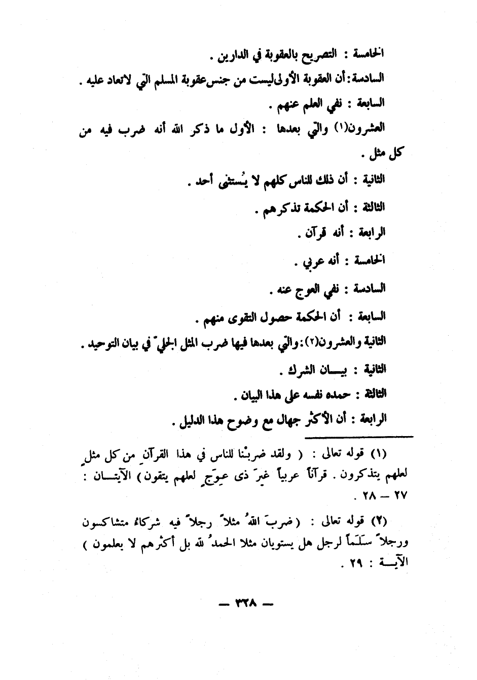 2 قوله تعالى: (ضرب الله مثلا رجلا فيه شركاء متشاكسون ورجلا سلما لرجل هل يستويان مثلا الحمد لله بل أكثرهم لا يعلمون) الآية: 29.