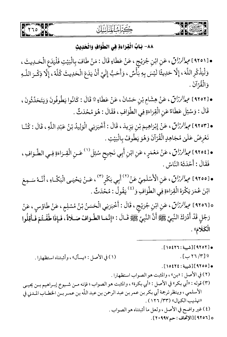 • [٩٢٥٤] عبد الرزاق، عَنْ مَعْمَرٍ، عَنِ ابْنِ أَبِي نَجِيحٍ سُئِلَ (¬١) عَنِ الْقِرَاءَةِ فِي الطَّوَافِ، فَقَالَ: أَحْدَثَهُ النَّاسُ.