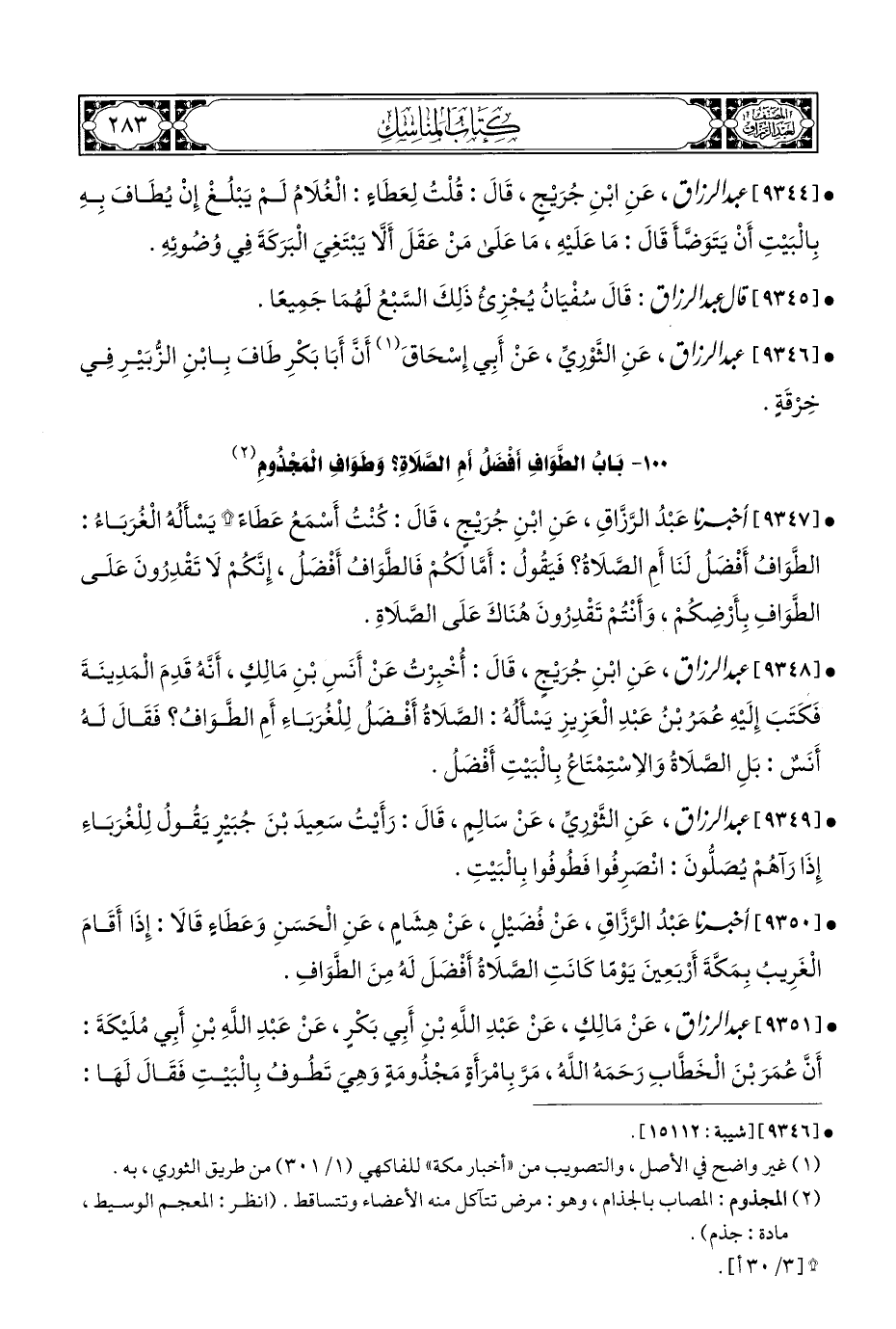١٠٠ - بَابُ الطَّوَافِ أفْضَلُ أَمِ الصَّلَاةِ؟ وَطَوَافِ الْمَجْذُومِ (¬٢)