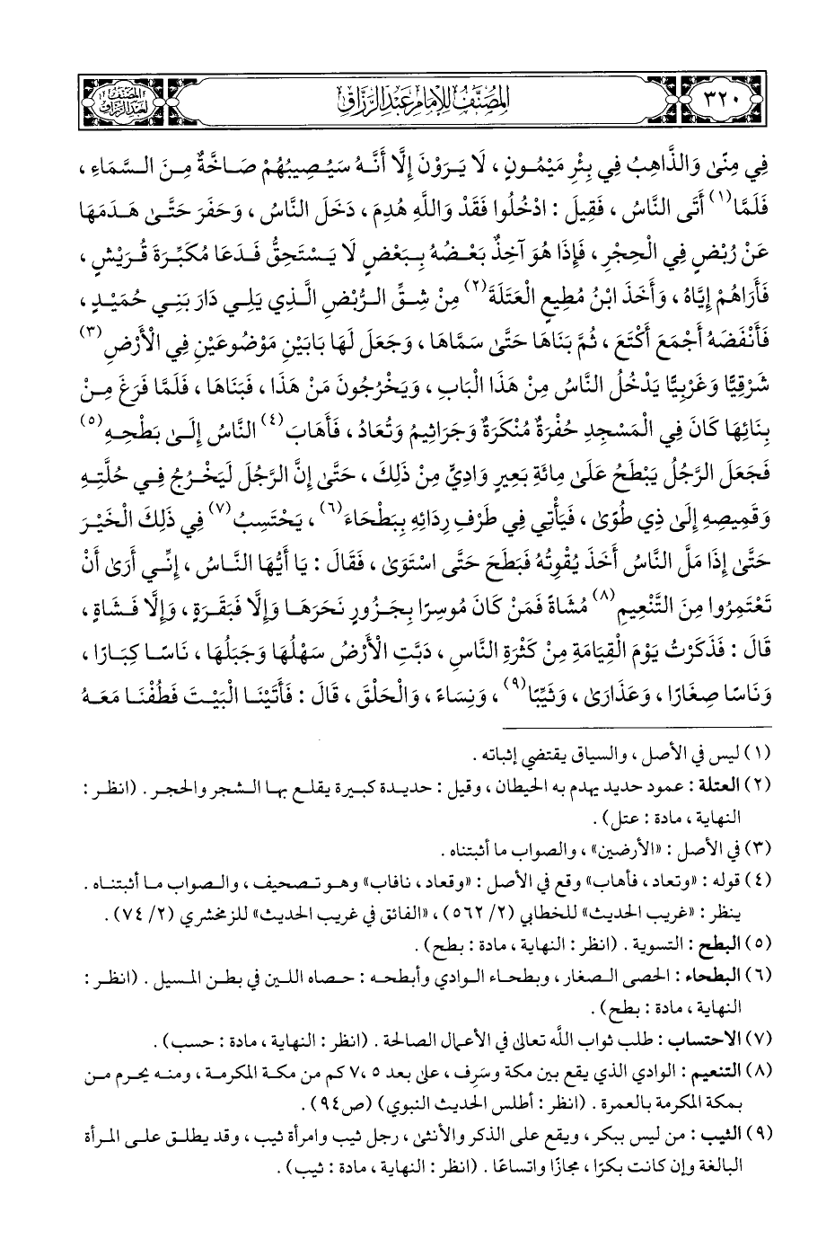 (¬٨) التنعيم: الوادي الذي يقع بين مكة وسَرِف، على بعد ٧.٥ كم من مكة المكرمة، ومنه يحرم من بمكة المكرمة بالعمرة. (انظر: أطلس الحديث النبوي) (ص ٩٤).
