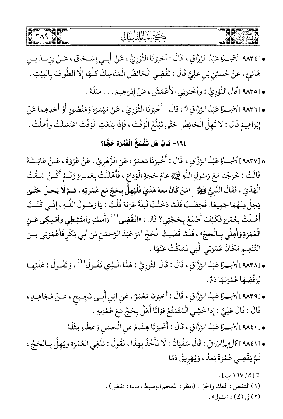 • [٩٨٣٨] أخبرنا عَبْدُ الرَّزَّاقِ، قَالَ: قَالَ الثَّوْرِيُّ: هَذَا الَّذِي نَقُولُ (¬٢)، وَنَقُولُ: عَلَيْهَا لِرَفْضِهَا عُمْرَتَهَا دَمٌ.