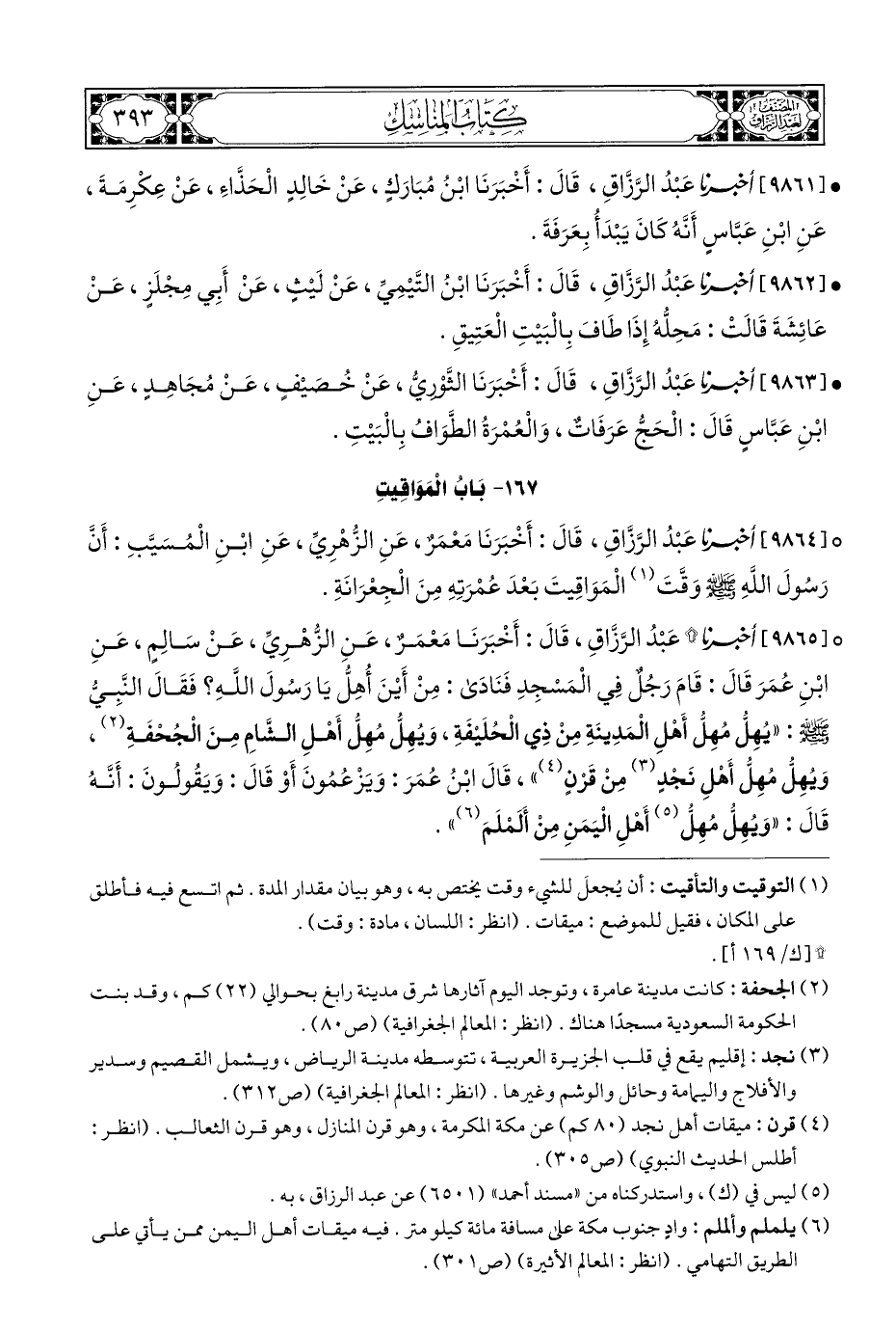 ° [٩٨٦٤] أخبرنا عَبْدُ الرَّزَّاقِ، قَالَ: أَخْبَرَنَا مَعْمَرٌ، عَنِ الزُّهْرِيِّ، عَنِ ابْنِ الْمُسَيَّبِ: أَنَّ رَسُولَ اللهِ - صلى الله عليه وسلم - وَقَّتَ (¬١) الْمَوَاقِيتَ بَعْدَ عُمْرَتِهِ مِنَ الْجِعْرَانَةِ.