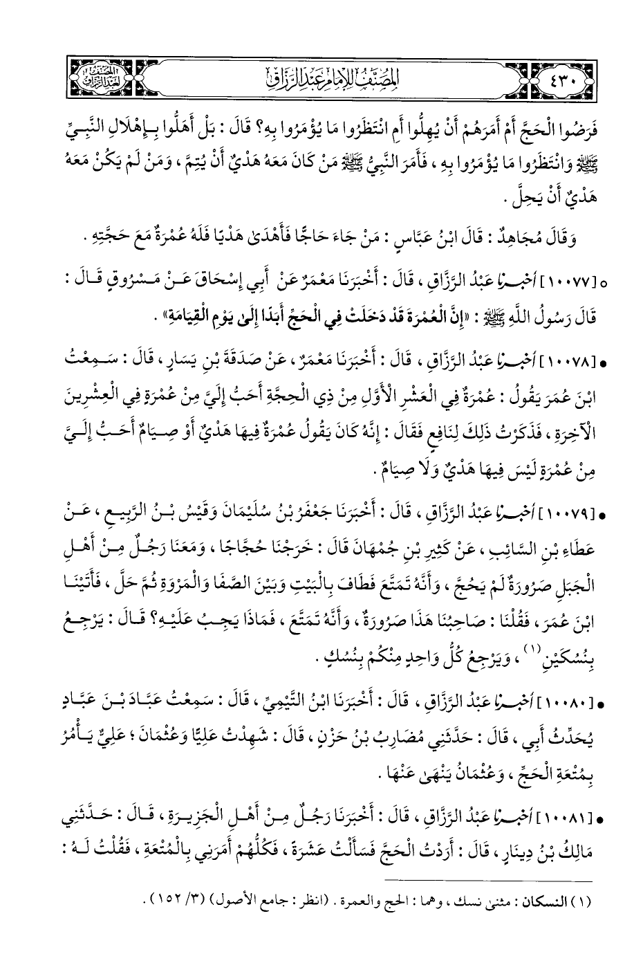 (¬١) النسكان: مثنى نسك، وهما: الحج والعمرة. (انظر: جامع الأصول) (٣/ ١٥٢).