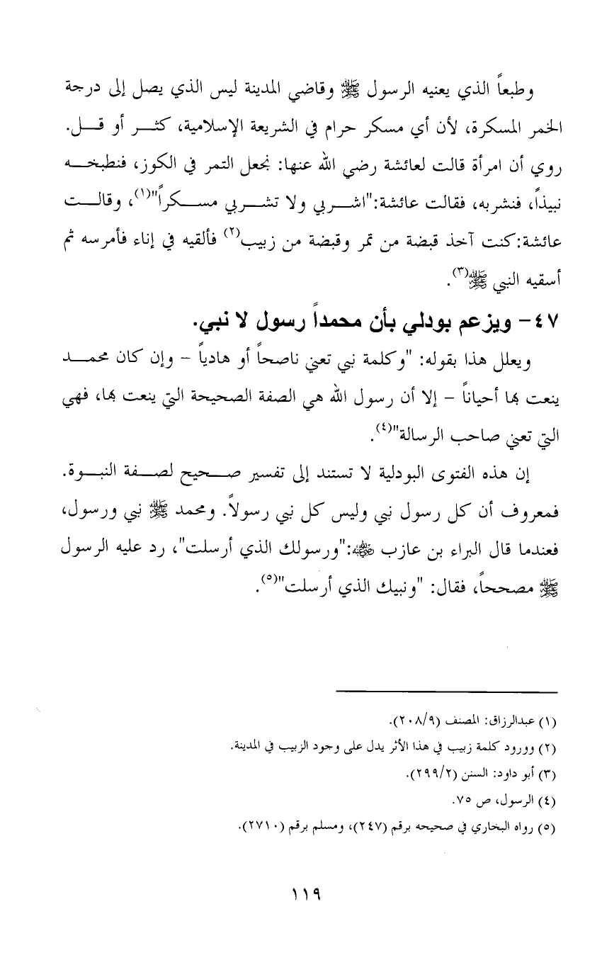 47- ويزعم بودلي بأن محمداً رسول لا نبي.