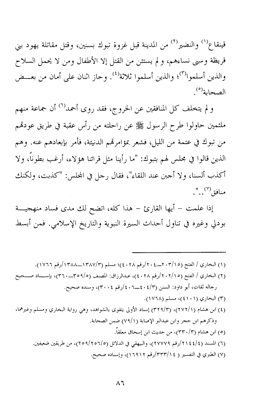 إذا علمت - أيها القارئ - هذا كله، اتضح لك مدى فساد منهجية بودلي وغيره في تناول أحداث السيرة النبوية والتاريخ الإسلامي. فمن أبسط