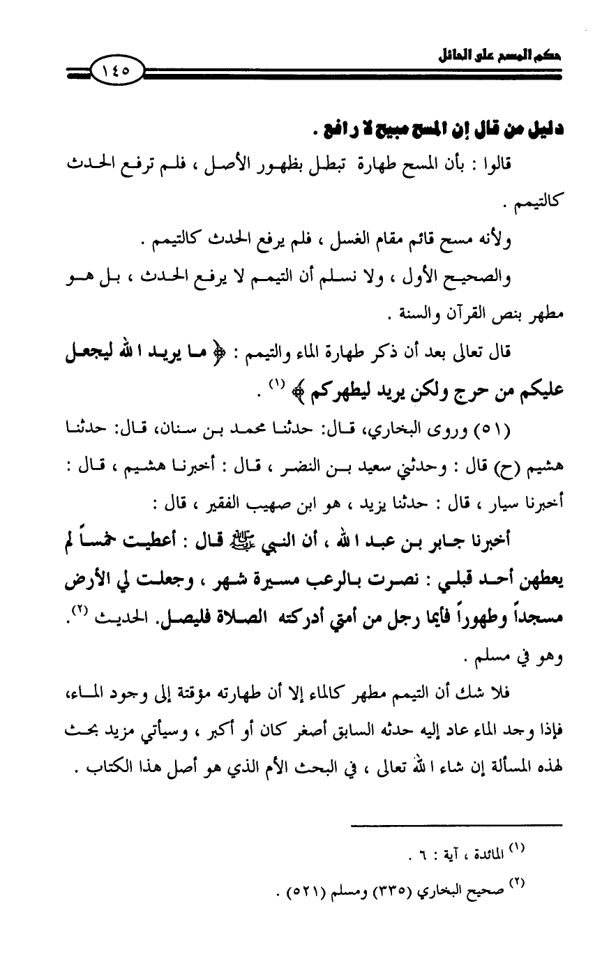 دليل من قال إن المسح مبيح لا رافع.