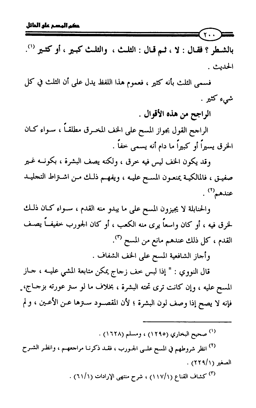 (¬٢) انظر شروطهم في المسح على الجورب، فقد ذكرنا مراجعهم، وانظر الشرح الصغير (١/ ٢٢٩).