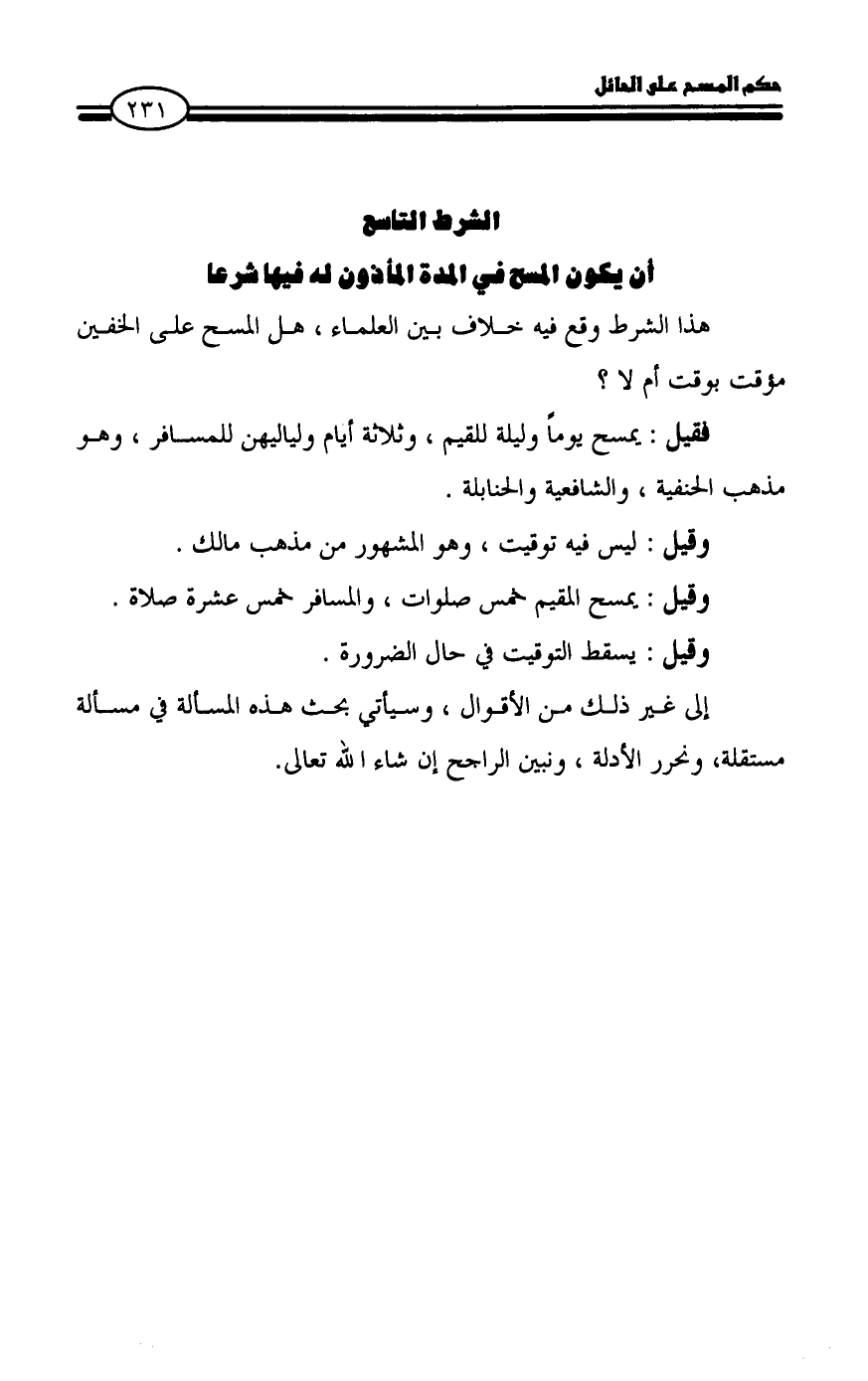 هذا الشرط وقع فيه خلاف بين العلماء، هل المسح على الخفين مؤقت بوقت أم لا؟