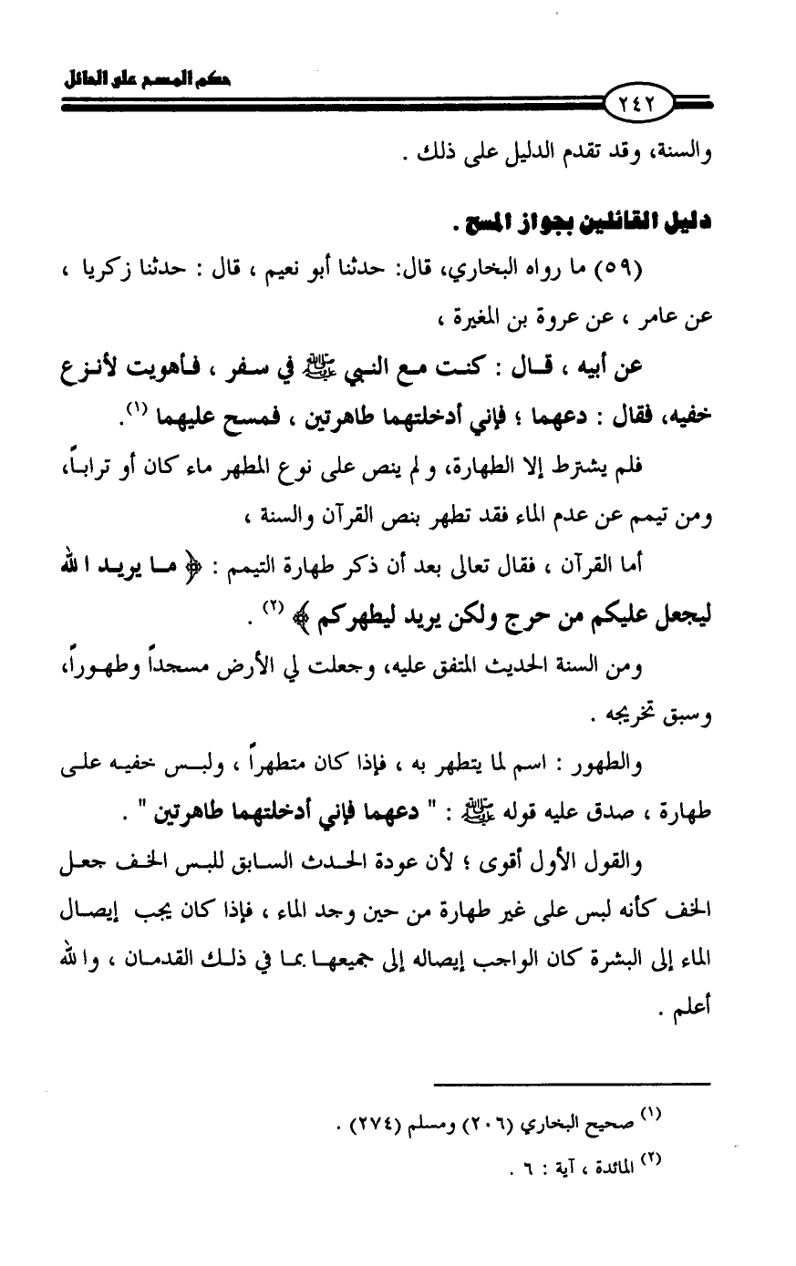 دليل القائلين بجواز المسح.