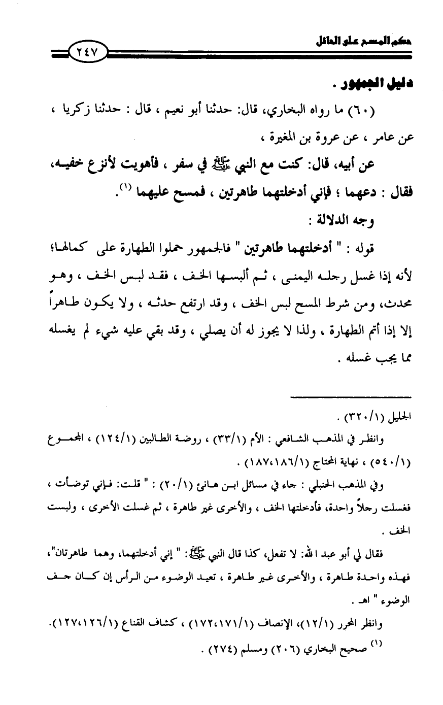 (٦٠) ما رواه البخاري، قال: حدثنا أبو نعيم، قال: حدثنا زكريا، عن عامر، عن عروة بن المغيرة،