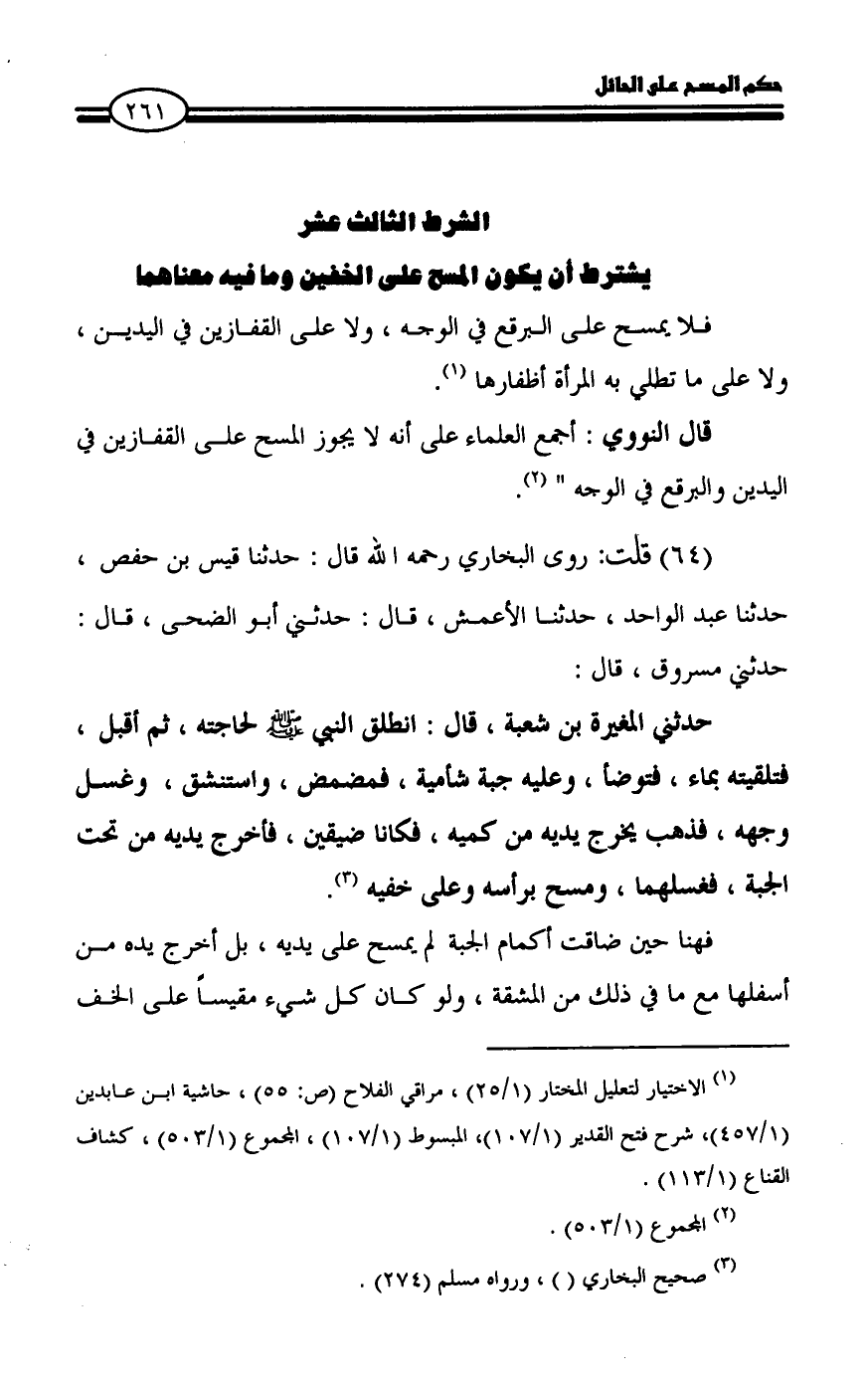 (¬١) الاختيار لتعليل المختار (١/ ٢٥)، مراقي الفلاح (ص: ٥٥)، حاشية ابن عابدين (١/ ٤٥٧)، شرح فتح القدير (١/ ١٠٧)، المبسوط (١/ ١٠٧)، المجموع (١/ ٥٠٣)، كشاف القناع (١/ ١١٣).