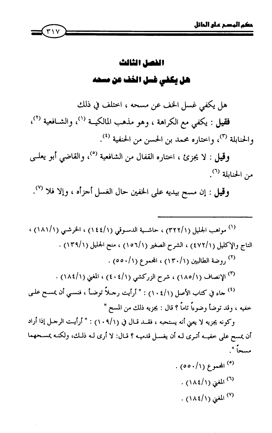 (¬٣) الإنصاف (١/ ١٨٥)، شرح الزركشي (١/ ٤٠٤)، المغني (١/ ١٨٤).