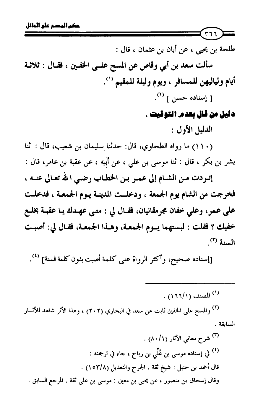 (¬٢) والمسح على الخفين ثابت عن سعد في البخاري (٢٠٢)، وهذا الأثر شاهد للأثار السابقة.
