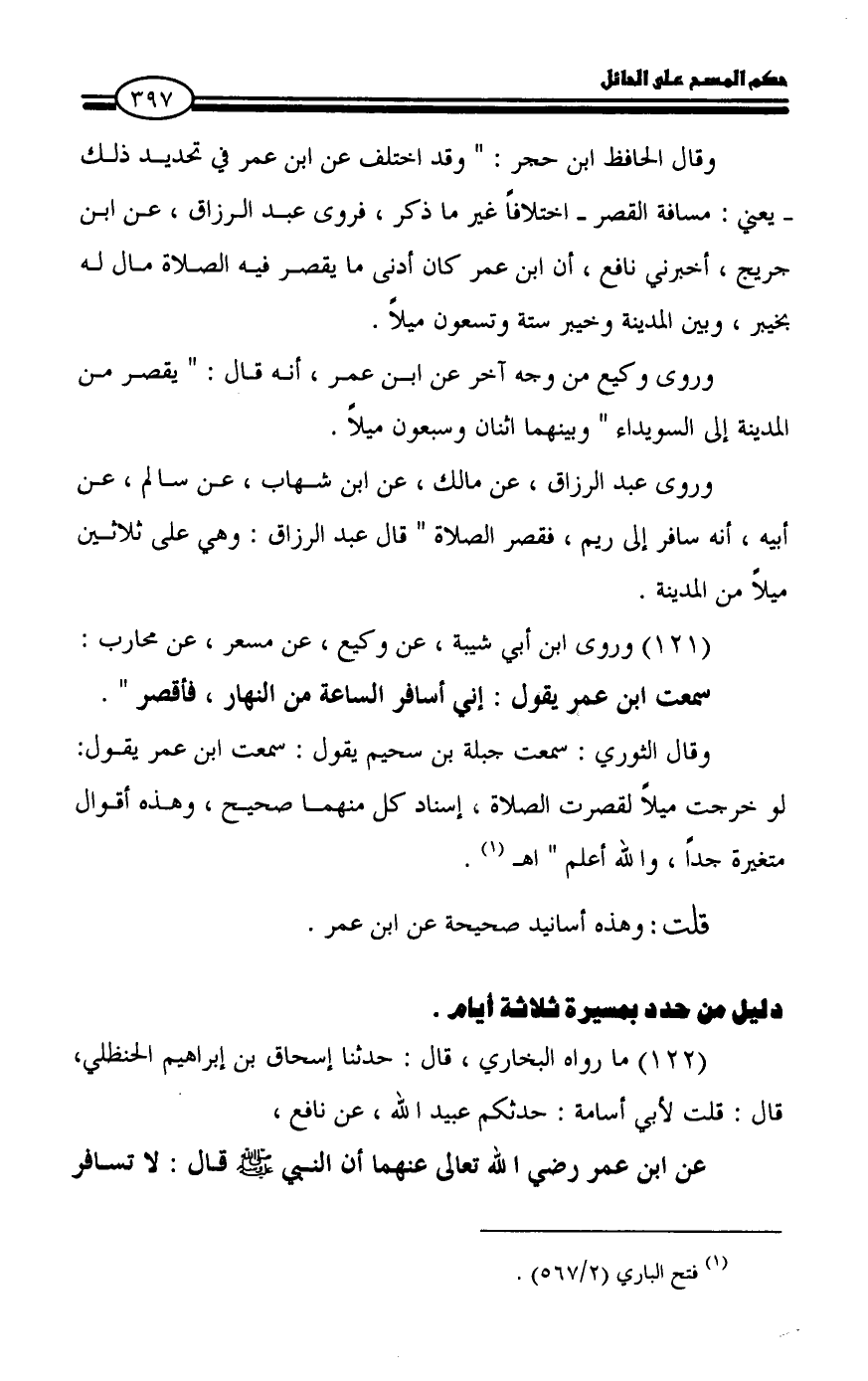 وقال الحافظ ابن حجر: " وقد اختلف عن ابن عمر في تحديد ذلك