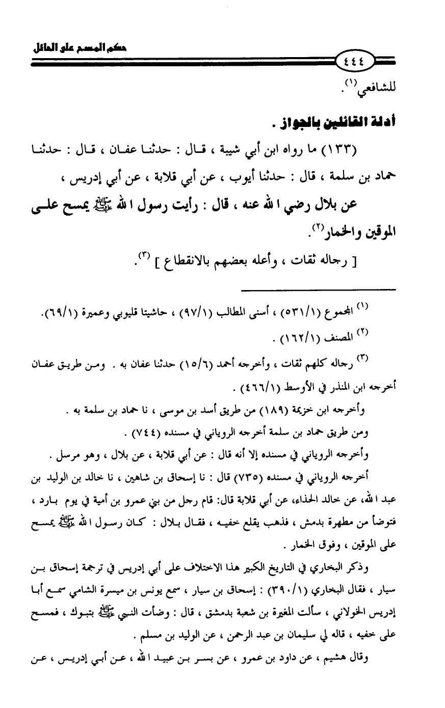 (١٣٣) ما رواه ابن أبي شيبة، قال: حدثنا عفان، قال: حدثنا حماد بن سلمة، قال: حدثنا أيوب، عن أبي قلابة، عن أبي إدريس،