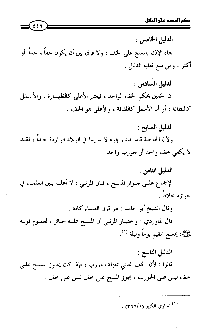 الإجماع على جواز المسح، قال المزني: لا أعلم بين العلماء في جوازه خلافاً.