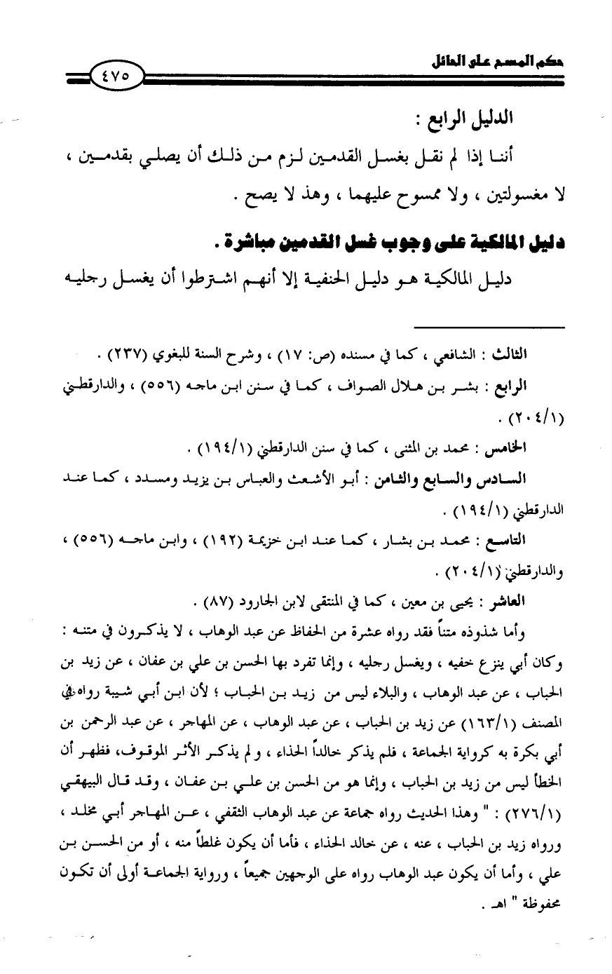 دليل المالكية على وجوب غسل القدمين مباشرة.