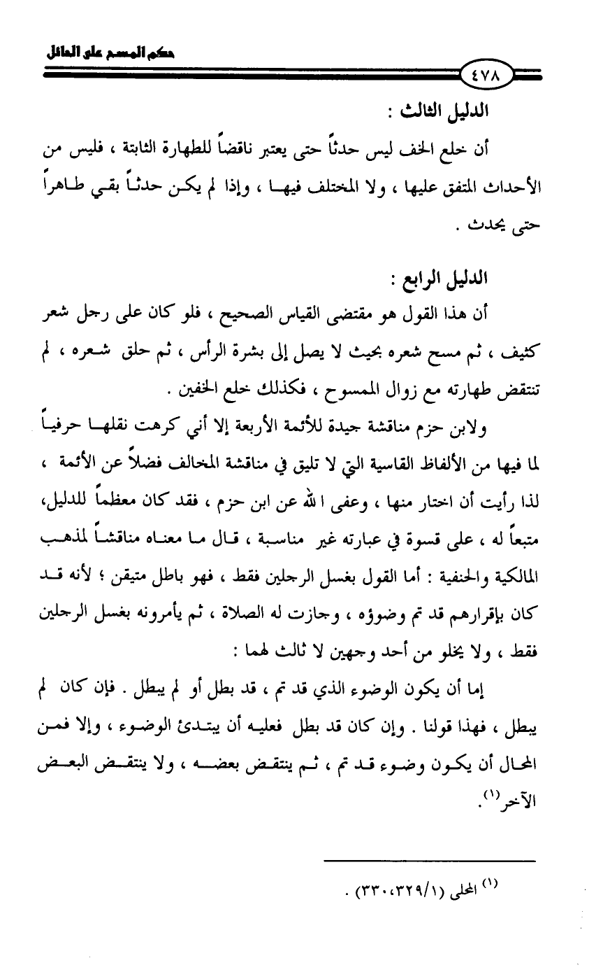 (¬١) المحلى (١/ ٣٢٩، ٣٣٠).