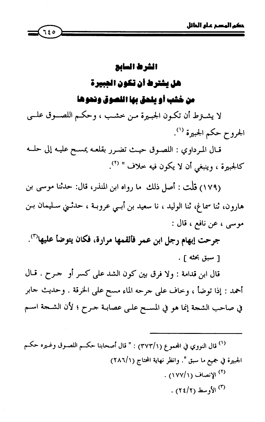 (¬١) قال النووي في المجموع (١/ ٣٧٣): " قال أصحابنا حكم اللصوق وغيره حكم الجبيرة في جميع ما سبق ". وانظر نهاية المحتاج (١/ ٢٨٦)