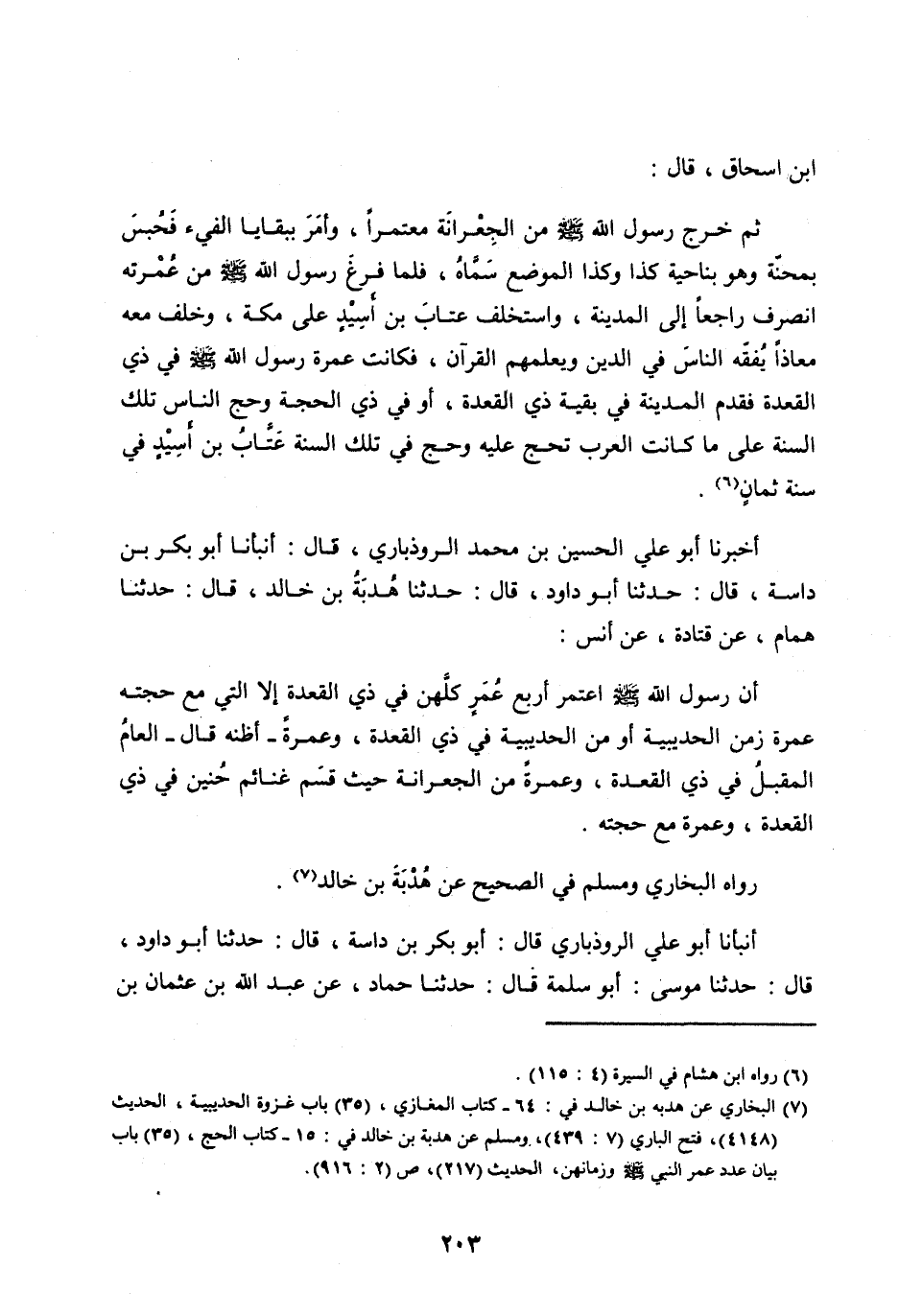 [ (7) ] الْبُخَارِيُّ عَنْ هُدْبَةَ بْنِ خَالِدٍ في: 64- كتاب المغازي، (35) باب غزوة الحديبية، الحديث (4148) ، فتح الباري (7: 439) ، ومسلم عَنْ هُدْبَةَ بْنِ خَالِدٍ في: 15- كتاب الحج، (35) باب بيان عدد عُمُرِ النَّبِيِّ صَلَّى اللهُ عليه وسلم وزمانهن، الحديث (217) ، ص (2: 916) .