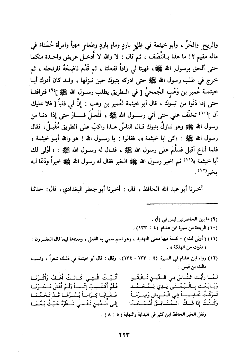 [ (12) ] رواه ابن هشام في السيرة (4: 133- 134) ، وقال: قال أبو خيثمة في ذلك شعرا، واسمه مالك بن قيس: