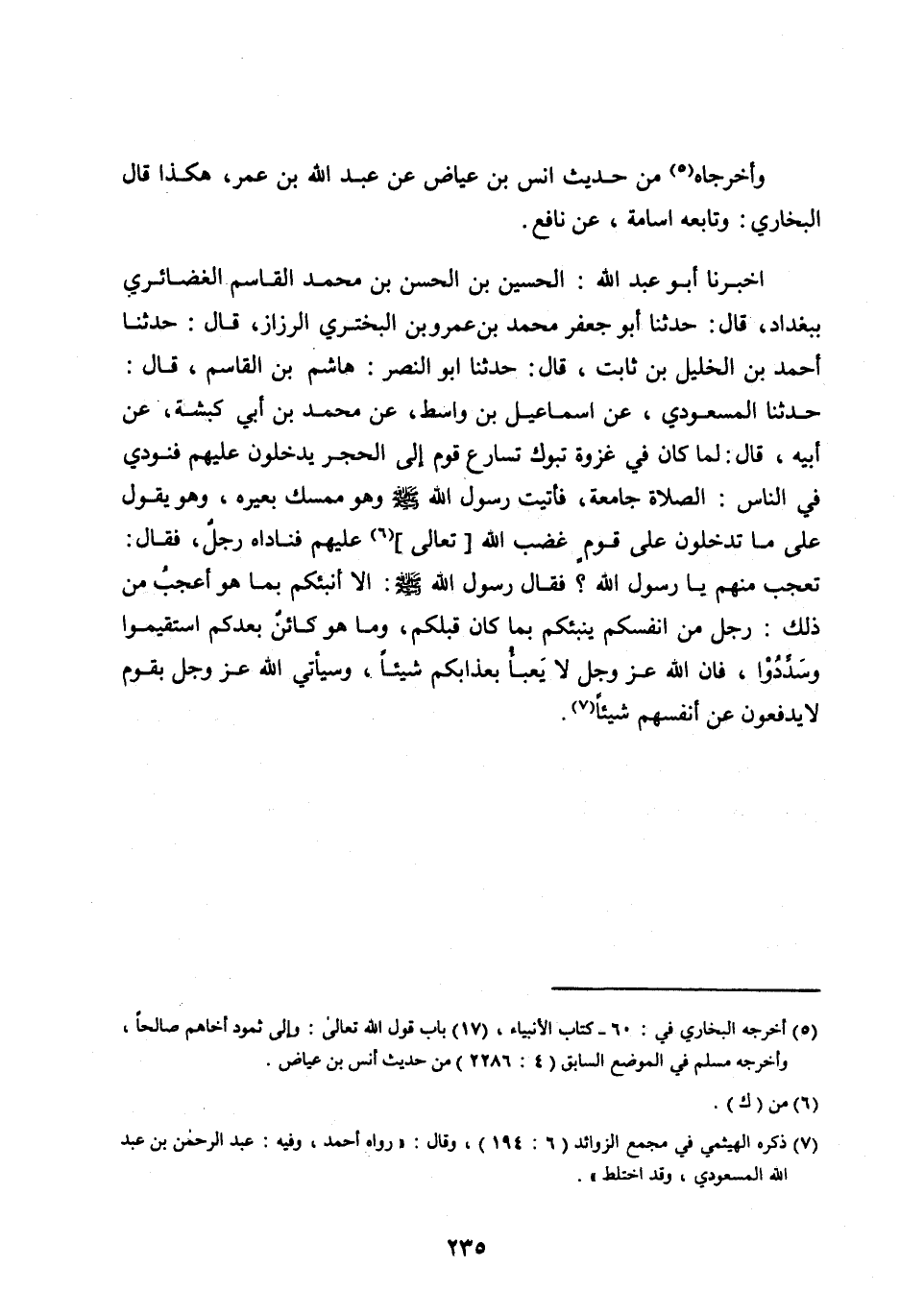 [ (5) ] أخرجه البخاري في: 60- كتاب الأنبياء، (17) باب قول الله تعالى: وإلى ثمود أخاهم صالحا، وأخرجه مسلم في الموضع السابق (4: 2286) مِنْ حَدِيثِ أَنَسِ بْنِ عياض.