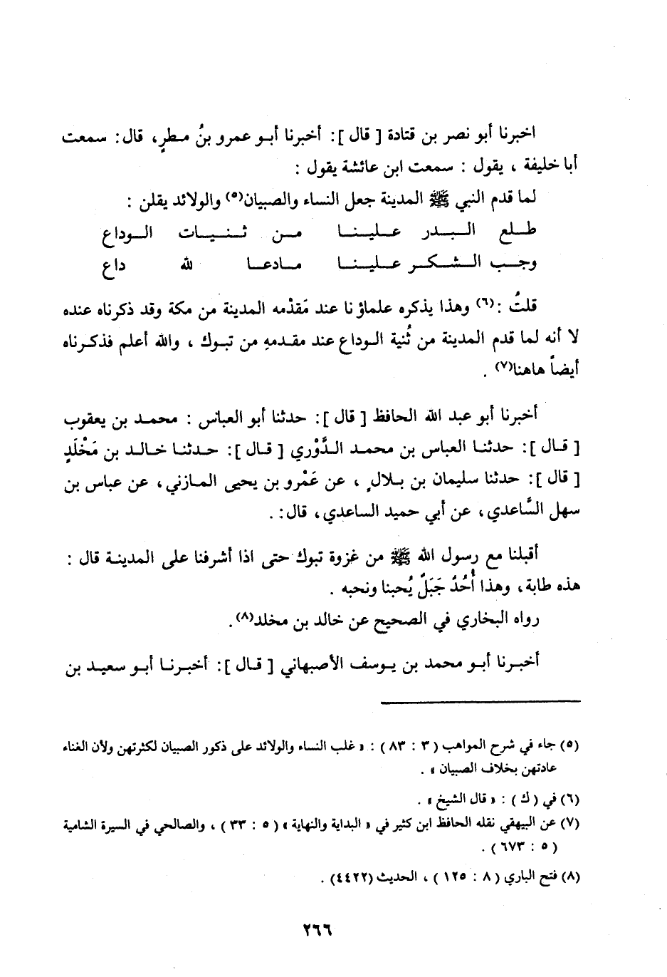 قُلْتُ: [ (6) ] وَهَذَا يَذْكُرُهُ عُلَمَاؤُنَا عِنْدَ مَقْدَمِهِ الْمَدِينَةَ مِنْ مَكَّةَ وَقَدْ ذَكَرْنَاهُ عِنْدَهُ لَا أَنَّهُ لَمَّا قَدِمَ الْمَدِينَةَ مِنْ ثَنِيَّةِ الْوَدَاعِ عِنْدَ مَقْدَمِهِ مِنْ تَبُوكَ، وَاللهُ أَعْلَمُ فَذَكَرْنَاهُ أَيْضًا هَاهُنَا [ (7) ] .