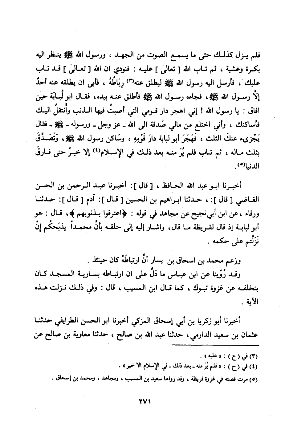 [ (5) ] مرت قصته في غزوة قريظة، وقد رواها سعيد بن المسيب، ومجاهد، ومحمد بن إسحاق.