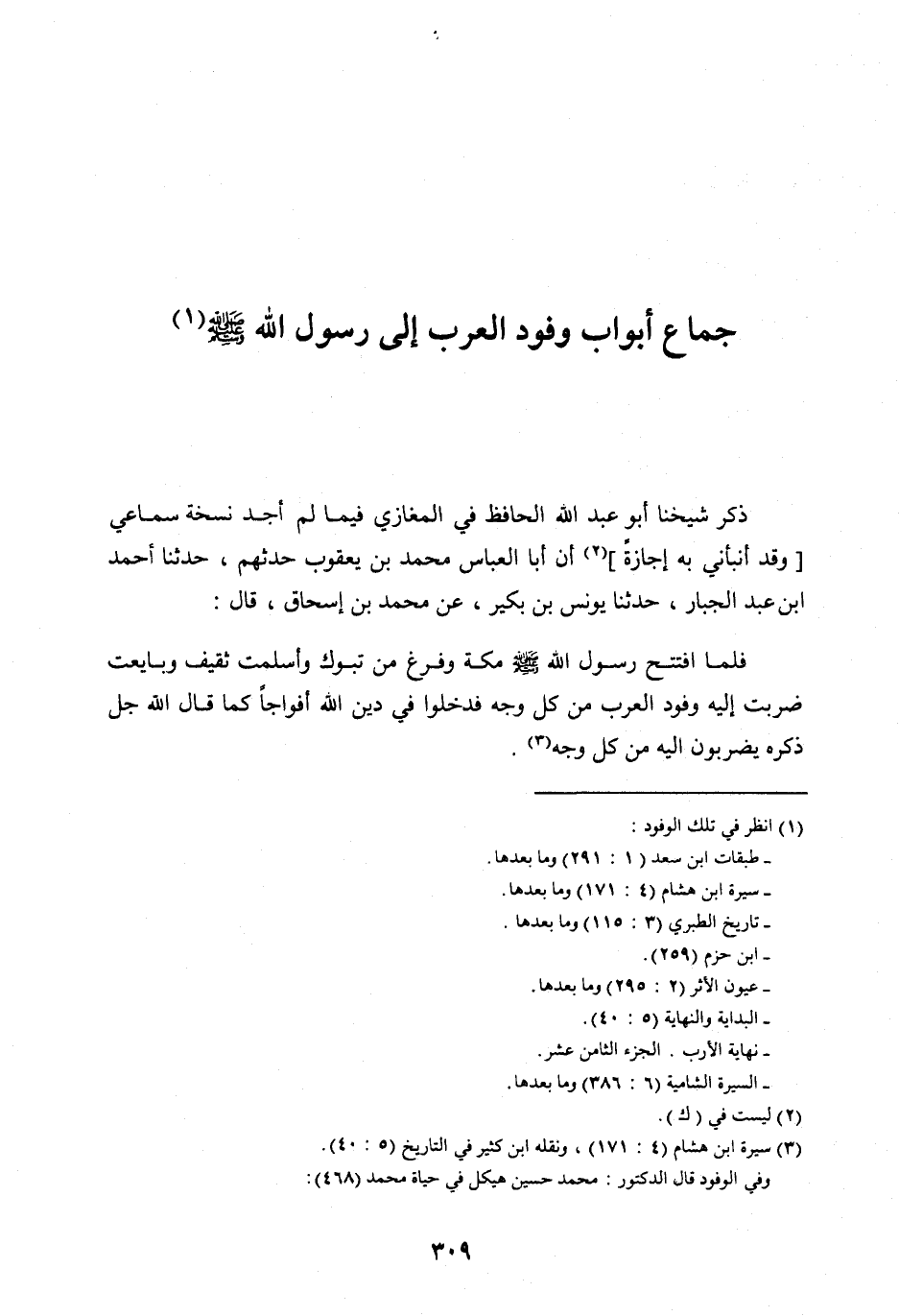 جُمَّاعُ أَبْوَابِ وُفُودِ الْعَرَبِ إِلَى رَسُولِ اللهِ صَلَّى اللهُ عَلَيْهِ وَسَلَّمَ [ (1) ]