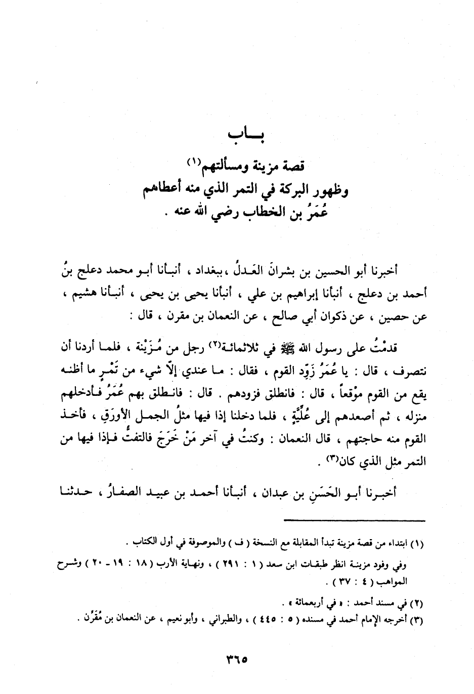 بَابُ قِصَّةِ مُزَيْنَةَ وَمَسْأَلَتِهِمْ [ (1) ] وَظُهُوَرِ الْبَرَكَةِ فِي التَّمْرِ الَّذِي مِنْهُ أَعْطَاهُمْ عُمَرُ بْنِ الْخَطَّابِ رَضِيَ اللهُ عَنْهُ.