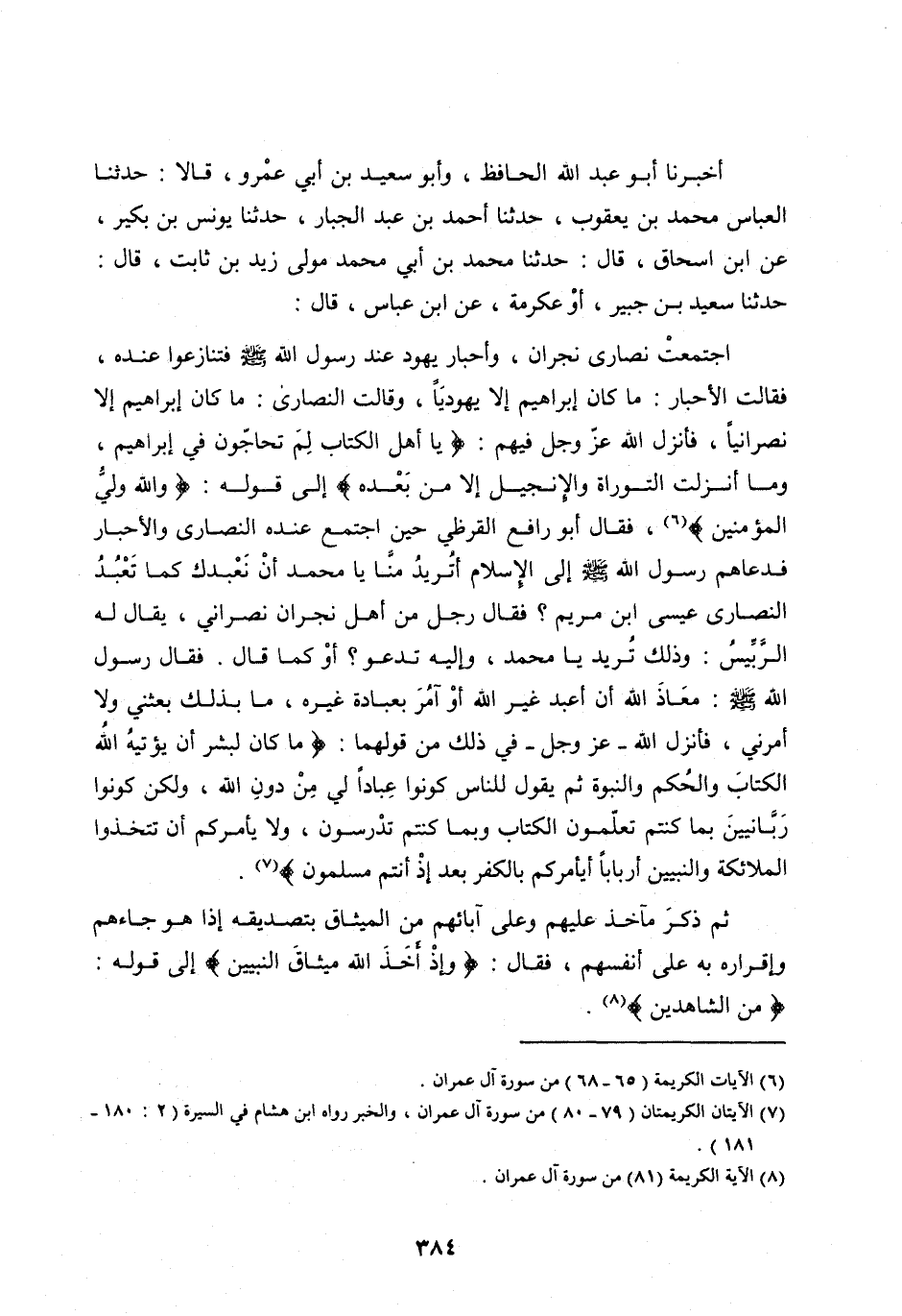 [ (7) ] الآيتان الكريمتان (79- 80) من سورة آل عمران، والخبر رواه ابن هشام في السيرة (2: 180- 181) .