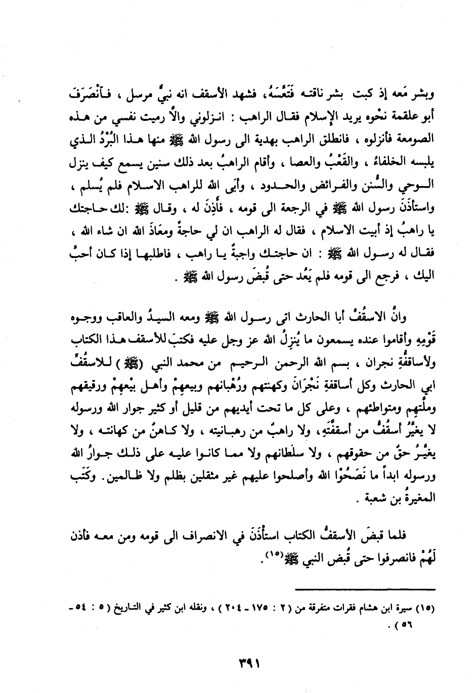 فَلَمَّا قَبَضَ الْأُسْقُفُّ الْكِتَابَ اسْتَأْذَنَ فِي الِانْصِرَافِ إِلَى قَوْمِهِ وَمَنْ مَعَهُ فَأَذِنَ لَهُمْ فَانْصَرَفُوا حَتَّى قُبِضَ النَّبِيُّ صَلَّى اللهُ عليه وسلم [ (15) ] .
