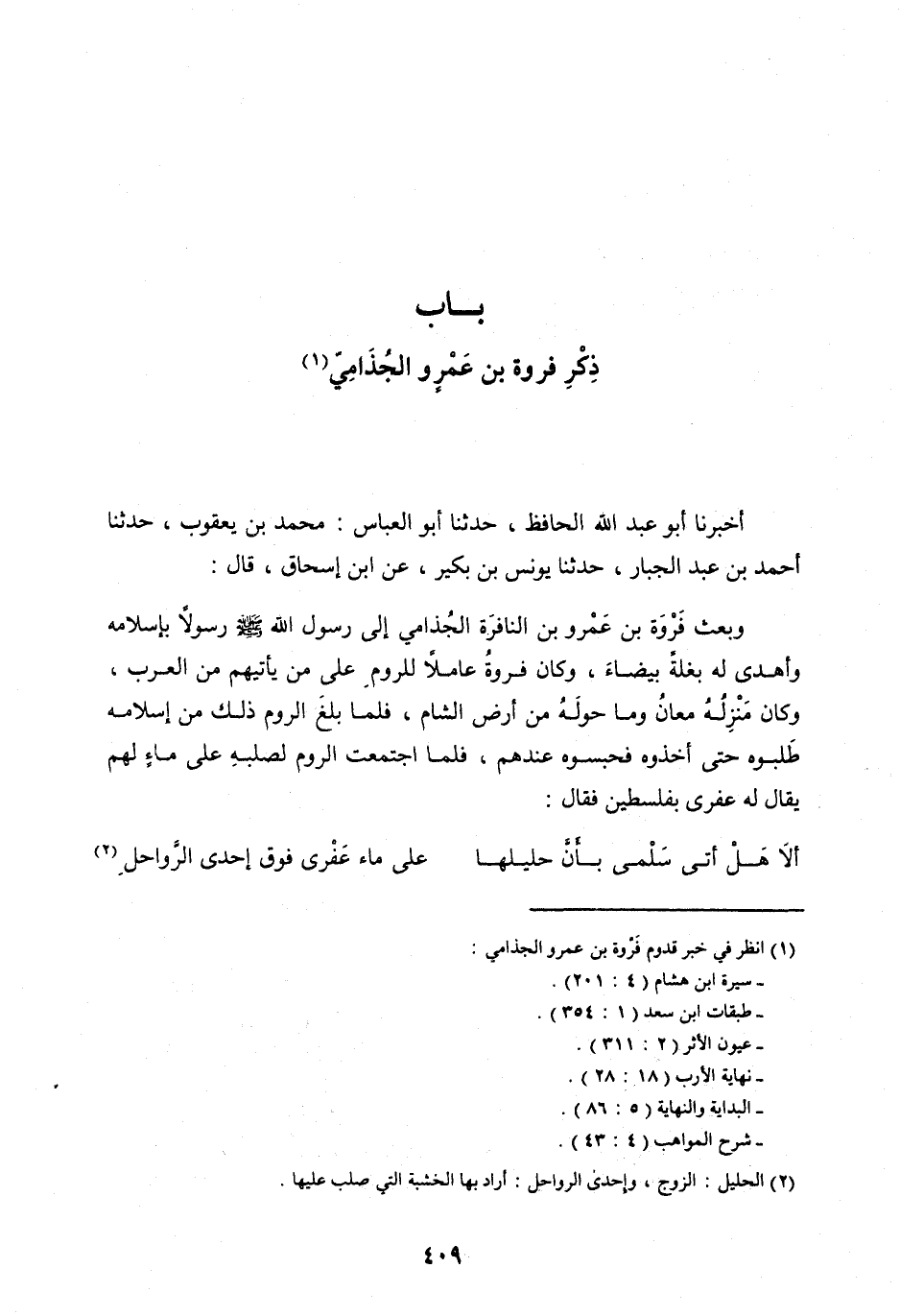 [ (1) ] انظر في خبر قدوم فَرْوَةَ بْنِ عَمْرٍو الْجُذَامِيِّ: