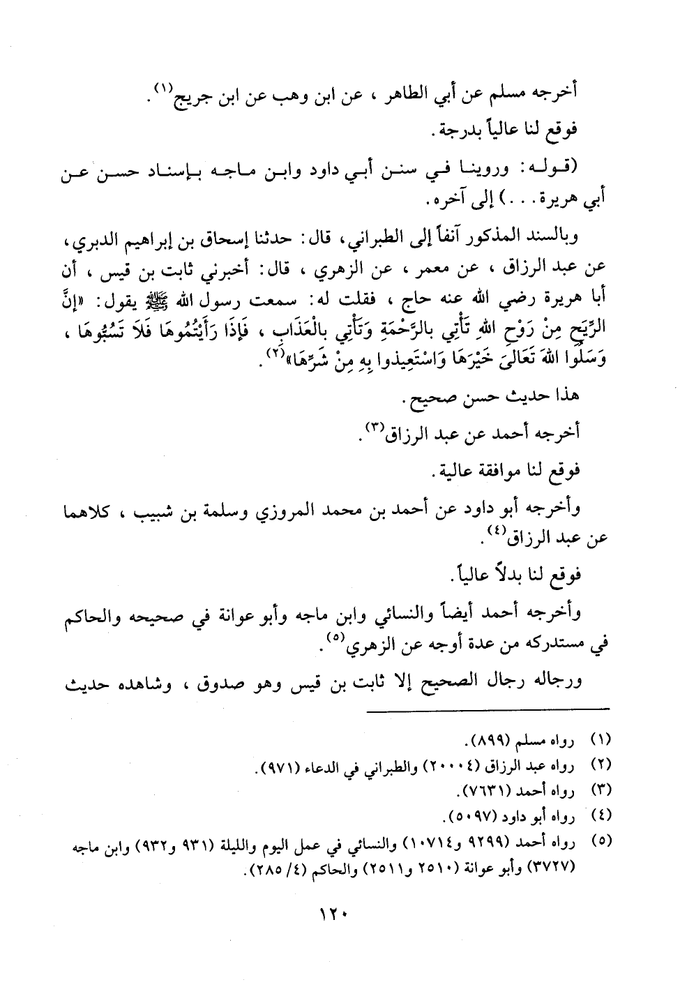 وبالسند المذكور آنفاً إلى الطبراني، قال: حدثنا إسحاق بن إبراهيم الدبري، عن عبد الرزاق، عن معمر، عن الزهري، قال: أخبرني ثابت بن قيس، أن أبا هريرة رضي الله عنه حاج، فقلت له: سمعت رسول الله صلى الله عليه وسلم يقول: ((إن الريح من روح الله تأتي بالرحمة وتأتي بالعذاب، فإذا رأيتموها فلا تسبوها، وسلوا الله تعالى خيرها واستعيذوا به من شرها)).