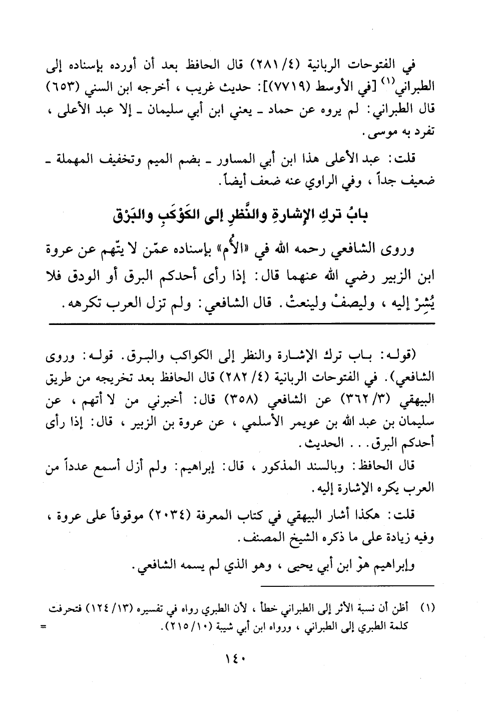 (قوله: باب ترك الإشارة والنظر إلى الكواكب والبرق. قوله: وروى الشافعي). في الفتوحات الربانية (4/282) قال الحافظ بعد تخريجه من طريق البيهقي (3/362) عن الشافعي (358) قال: أخبرني من لا أتهم، عن سليمان بن عبد الله بن عويمر الأسلمي، عن عروة بن الزبير، قال: إذا رأى أحدكم البرق .. .. الحديث.