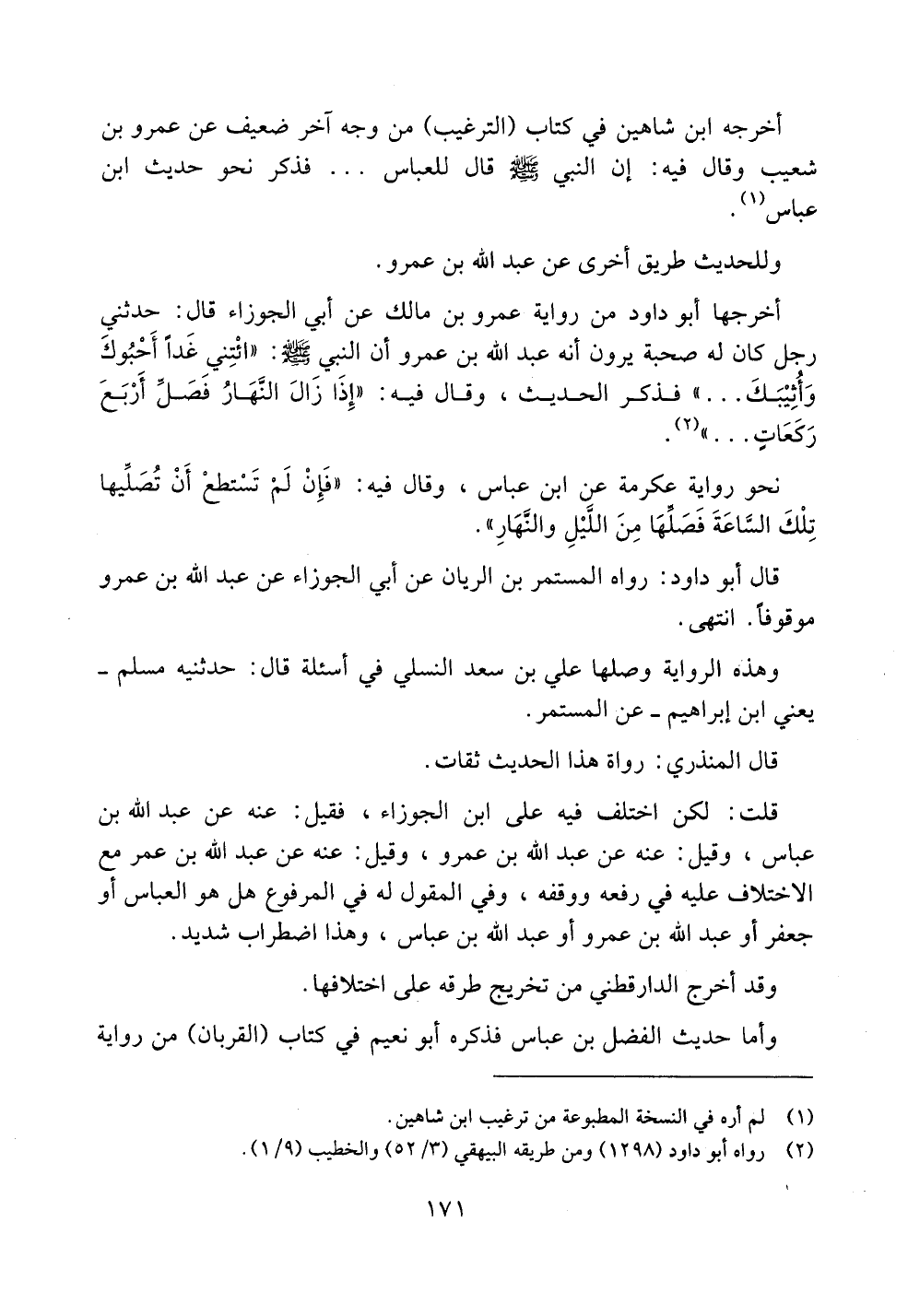 قلت: لكن اختلف فيه على ابن الجوزاء، فقيل: عنه عن عبد الله بن عباس، وقيل: عنه عن عبد الله بن عمرو، وقيل: عنه عن عبد الله بن عمر مع الاختلاف عليه في رفعه ووقفه، وفي المقول له في المرفوع هل هو العباس أو جعفر أو عبد الله بن عمرو أو عبد الله بن عباس، وهذا اضطراب شديد.