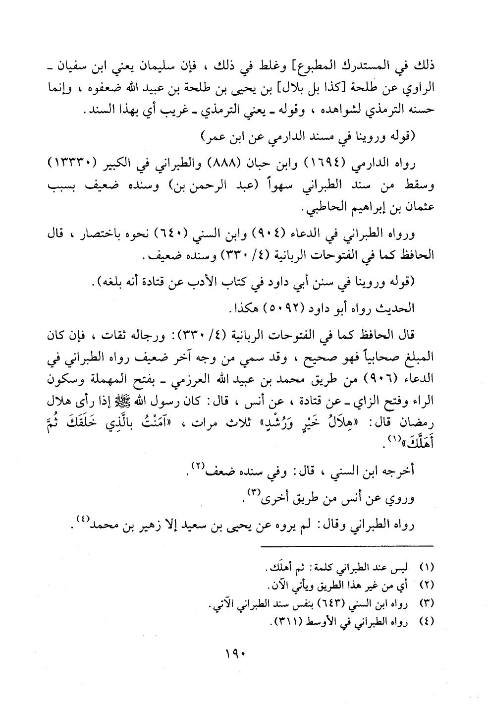 ورواه الطبراني في الدعاء (904) وابن السني (640) نحوه باختصار، قال الحافظ كما في الفتوحات الربانية (4/330) وسنده ضعيف.