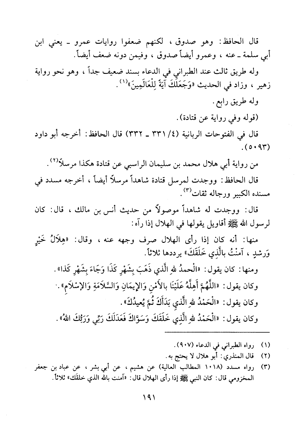 قال: ووجدت له شاهداً موصولاً من حديث أنس بن مالك، قال: كان لرسول الله صلى الله عليه وسلم أقاويل يقولها في الهلال إذا رآه: