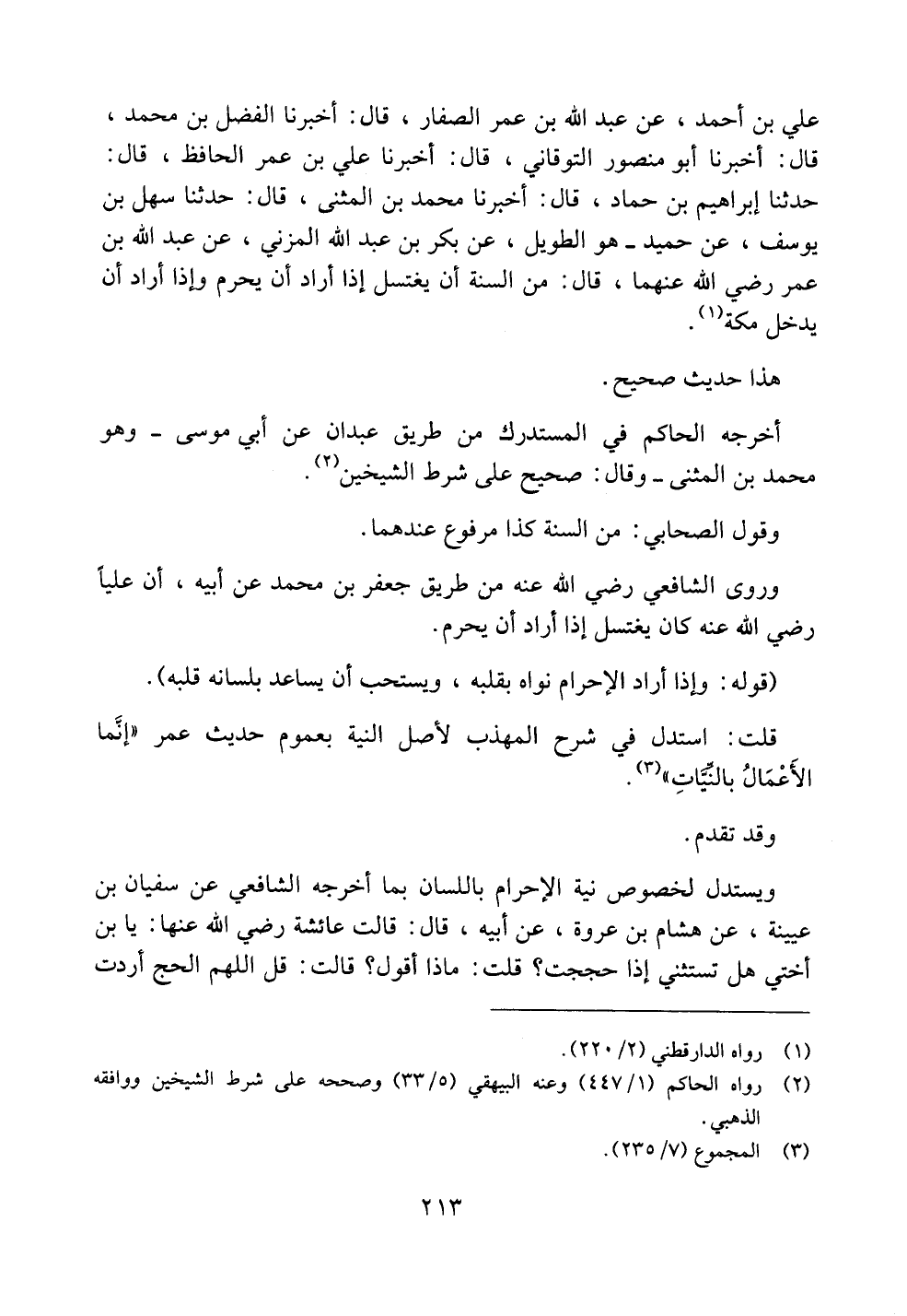 علي بن أحمد، عن عبد الله بن عمر الصفار، قال: أخبرنا الفضل بن محمد، قال: أخبرنا أبو منصور التوقاني، قال: أخبرنا علي بن عمر الحافظ، قال: حدثنا إبراهيم بن حماد، قال: أخبرنا محمد بن المثنى، قال: حدثنا سهل بن يوسف، عن حميد - هو الطويل، عن بكر بن عبد الله المزني، عن عبد الله بن عمر رضي الله عنهما، قال: من السنة أن يغتسل إذا أراد أن يحرم وإذا أراد أن يدخل مكة.