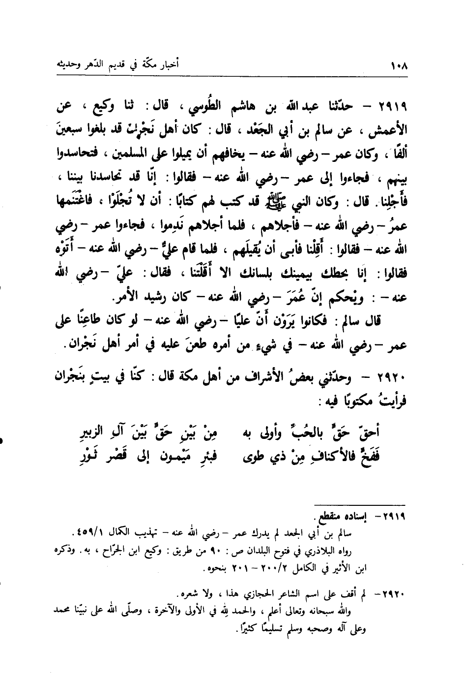 34 - وَحدثنَا مُحَمَّد بن عَليّ الْمروزِي قَالَ حَدثنَا ابْن حميد قَالَ حَدثنَا سَلمَة بن الْفضل قَالَ قَالَ ابْن اسحاق فَحَدثني مُحَمَّد بن عبد الرَّحْمَن بن عبد الله بن حصن عَن عُرْوَة بن الزبير قَالَ كَانَت الْحجاز أَسحر أَرض الله وأكثرها مَاء وَإِنَّمَا كَانَت الْخرق مظلة عَلَيْهَا قَالَ يَقُول عُرْوَة لقد بَلغنِي أَن العماليق تسرح بهَا فِي الْغَدَاة الْوَاحِدَة ألفي نَاضِح بَين أَحْمَر وجون
