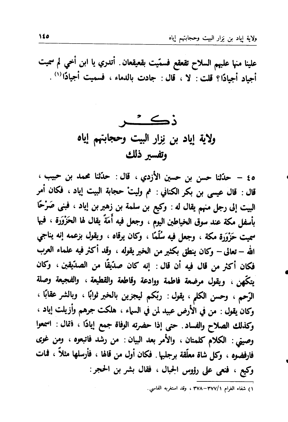 78 - روى الفاكهي بِسَنَدِهِ عَن هِشَام بن الْكَلْبِيّ عَن أَبِيه قَالَ كَانَت الْعَرَب فِي أشهر الْحَج على ثَلَاثَة أهواء مِنْهُم من يفعل الْمُنكر وهم المحلون الَّذين يحلونَ الْأَشْهر الْحرم فيغتالون فِيهَا وَيَسْرِقُونَ وَمِنْهُم من كَانَ يكف عَن ذَلِك وَمِنْهُم اهل هوى شرعة صلصل بن أَوْس بن مجاسر بن مُعَاوِيَة بن شرِيف من بني عَمْرو بن تَمِيم فِي قتال المحلين ثمَّ قَالَ أَن ذكر المحرمين وَكَانُوا يسمونهم الصلاصل لِأَن صلصلا شرع ذَلِك وَكَانُوا ينزلون على بِئْر قريبَة من مَكَّة ثمَّ يتفرقون فِي النَّاس مِنْهَا وَكَانَت الْبِئْر تسمى ببئر صلاصل