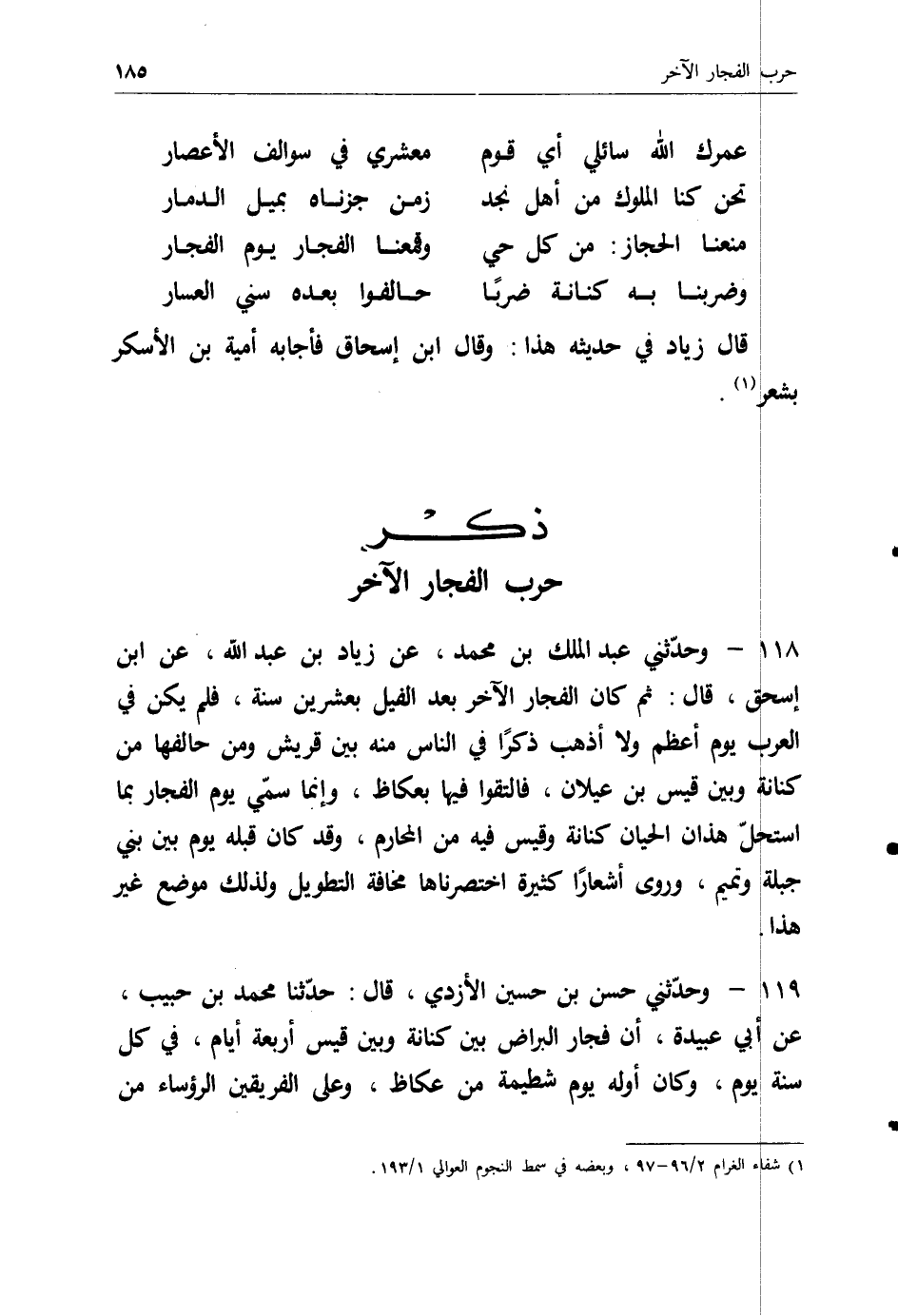 156 - قَالَ الفاكهي عَن الْكَلْبِيّ وَيُقَال إِن أول من أنسأ الشُّهُور عدي ابْن زيد بن عَامر بن ثَعْلَبَة بن الْحَارِث بن مَالك بن كنَانَة ثمَّ كَانَ بعد عدي ابْن عبد الله بن فقيم ثمَّ كَانَ بعده عباد بن حُذَيْفَة ثمَّ كَانَ قلع بن عباد