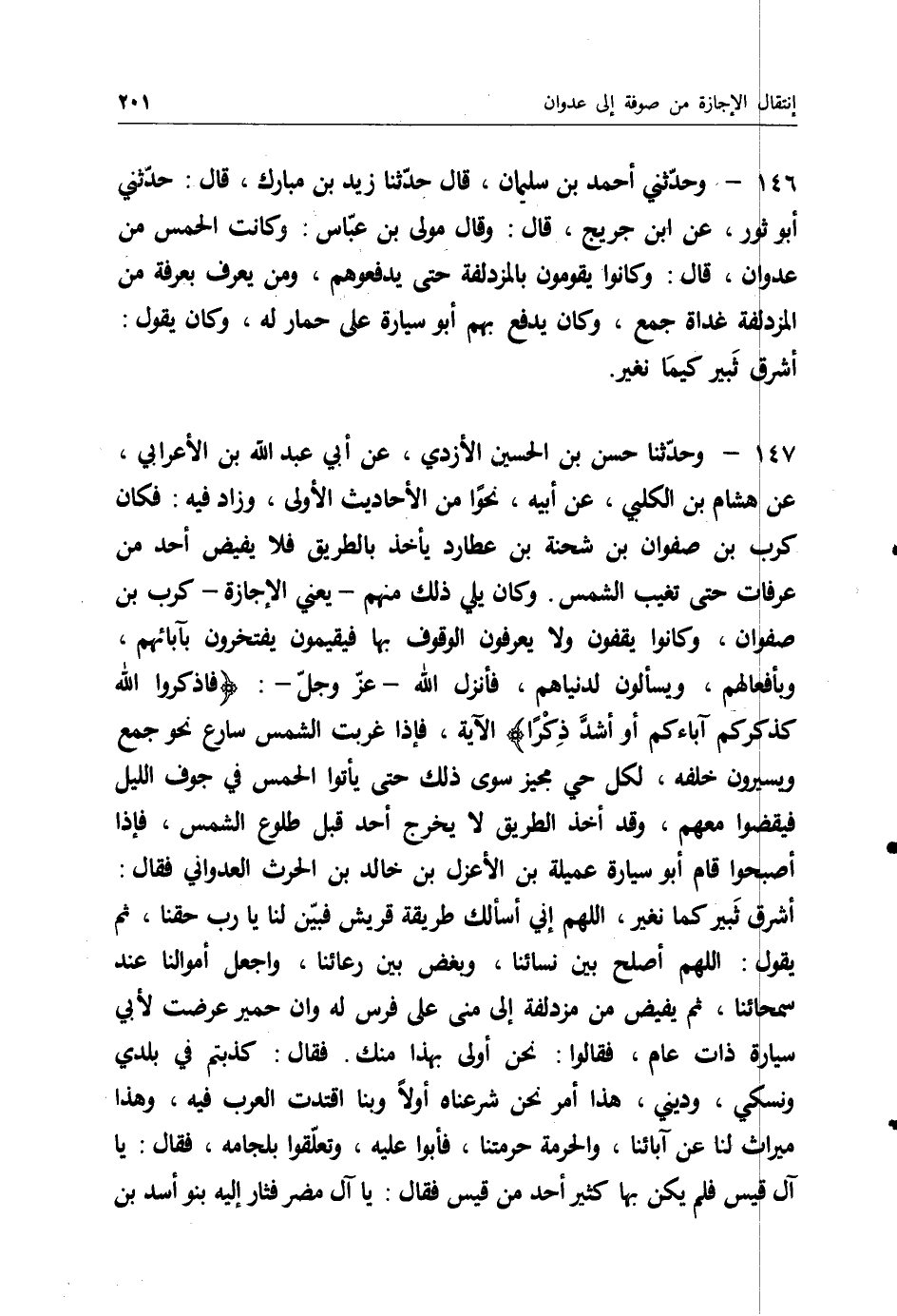 180 - حَدثنَا حسن بن حُسَيْن ان ابْن أبي عدي قَالَ حَدثنَا حُسَيْن الْمعلم عَن عَمْرو بن شُعَيْب عَن أَبِيه عَن جده أَن رَسُول الله صَلَّى اللَّهُ عَلَيْهِ وَسَلَّمَ لما فتح مَكَّة قَالَ كفوا السِّلَاح إِلَّا خُزَاعَة عَن بني بكر فَأذن لَهُم حَتَّى صلوا الْعَصْر ثمَّ أَمرهم ان يكفوا السِّلَاح حَتَّى إِذا كَانَ الْغَد لَقِي رجل من خُزَاعَة رجلا من بني بكر بِالْمُزْدَلِفَةِ فَقتله فَلَمَّا بلغ ذَلِك النَّبِي صَلَّى اللَّهُ عَلَيْهِ وَسَلَّمَ قَامَ خَطِيبًا وظهره إِلَى الْكَعْبَة فَقَالَ إِن أَعْتَى النَّاس على الله من عدا فِي الْحرم وَمن قتل غير قَاتله وَمن قتل بذحول الْجَاهِلِيَّة انْتهى بِاخْتِصَار