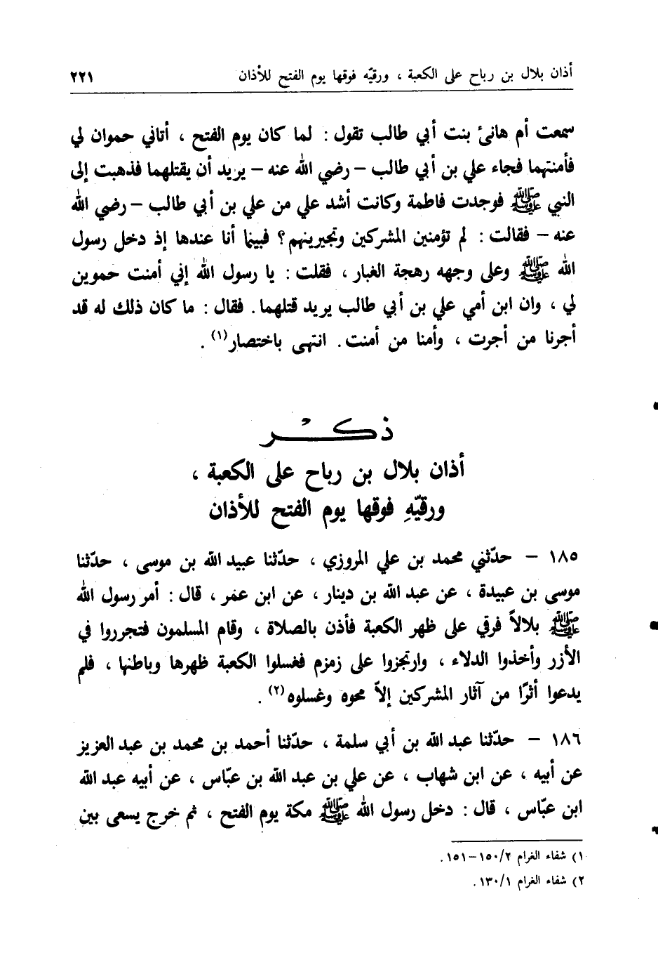 220 - عَن ابْن عمر قَالَ كَانَ بَنو أبي طَلْحَة يَزْعمُونَ أَنه لَا يَسْتَطِيع أحد فتح الْكَعْبَة غَيرهم فَأخذ رَسُول الله صَلَّى اللَّهُ عَلَيْهِ وَسَلَّمَ الْمِفْتَاح فَفَتحهَا بِيَدِهِ