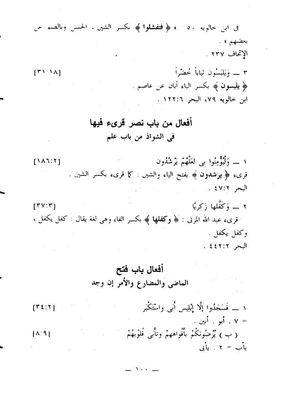 في ابن خالويه: 50: «{فتفشلوا} بكسر الشين. الحسن وبالضم عن بعضهم». الإتحاف 237.