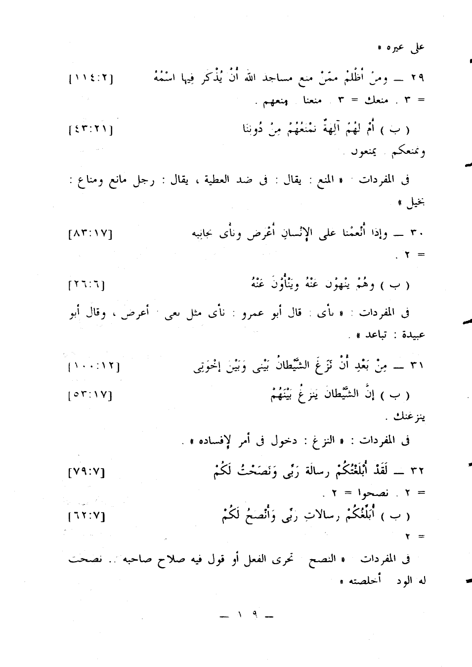 في المفردات: «المنع: يقال: في ضد العطية، يقال: رجل مانع ومناع: بخيل».